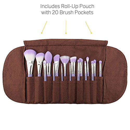 Bdellium Tools Eco-Friendly Purple Bambu Precision 17pc. Set with Roll-Up Pouch