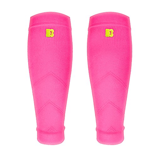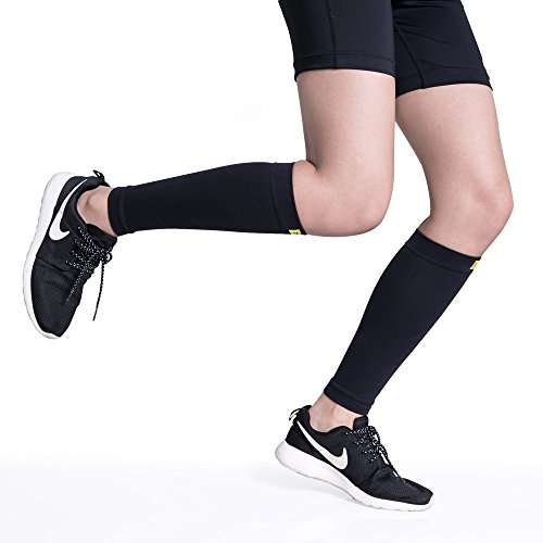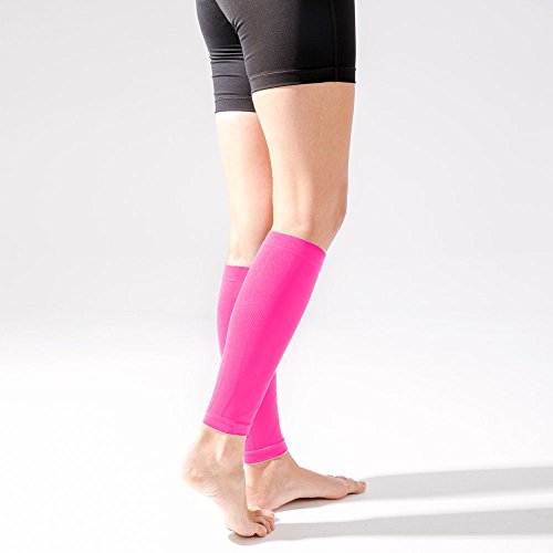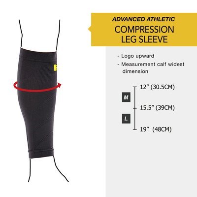 -. Feature : Ergonomic stitching tailored to support a broad range of athletic leg shapes; graduated compression improves blood circulation and performance; reducing lactic acid and boosting recovery / Excellent heat retention keeps muscles functioning at their peak during short periods of inactivity between exercise, minimizing the risk of muscle injuries and sprains / Premium knit fabric ensures a breathable yet durable sleeve which draws perspiration away from the skin to keep the wearer feeling dry and light under even the most intense exercise / Improved fabric flexibility; easy to put on and remove / Available in yellow, pink, and black; in M:12-15.5", L:15.5-19" (measure the widest calf circumference)