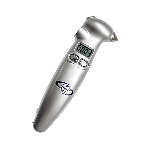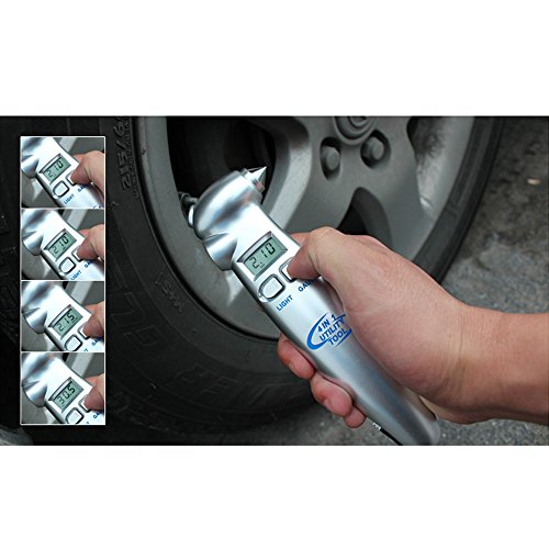 Digital Tire Pressure Gauge, CarBoss 4 in 1 Portable LCD Digital Tyre Pressure Gauge Meter Tester with 100 PSI 4 Settings for Car Truck with Flashlight, Safety Hammer & Seatbelt Cutter (1 Pack)