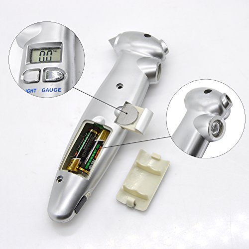Torch Function - This ingenious tool also provides you with bright flashlight just by pressing the corresponding "Light" button. The tire Gauge is operated by a CR2032 3V Lithium battery (not included).The Flashlight is operated by 2 x AAA 1.5V batteries (not included) and can be a great help when dealing with a flat tyre during the night or dozen other unexpected circumstances.