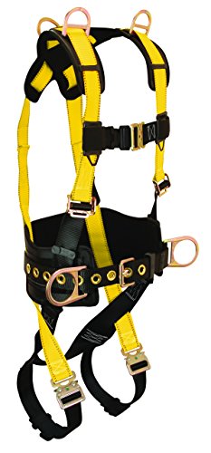 FallTech 7034QCL Journeyman, Retrieval, Belted FBH-5 D-Rings, Back, Side and Shoulder, Quick Connect Legs and Chest with Durable 6" Waist Pad, Large, Yellow/Black