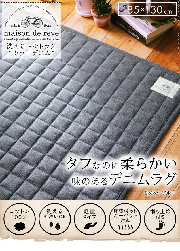 ●コットン 洗えるラグ キルト スミノエ 丸洗い 185 滑り止め付き