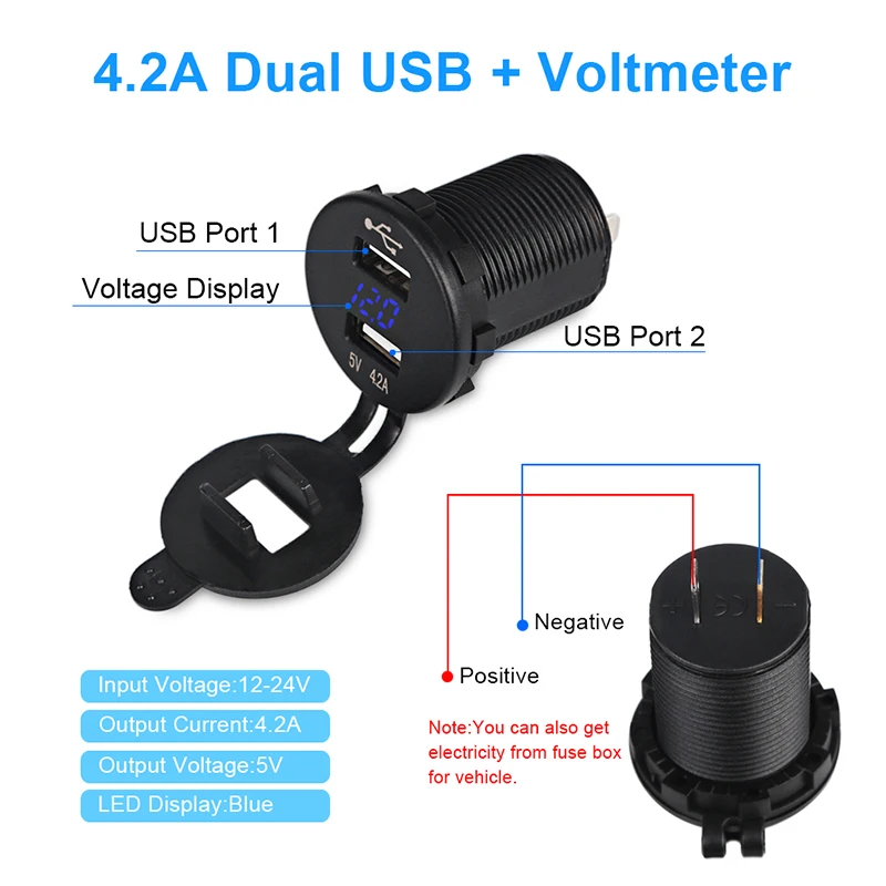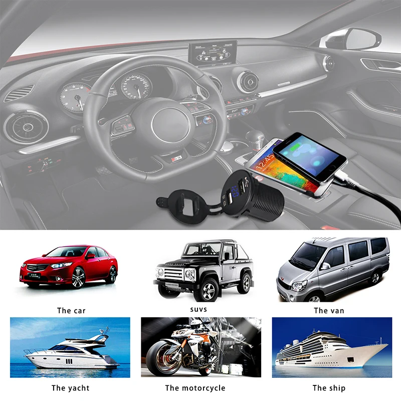 12v usb socket motorcycle:car usb socket voltmeter For ipad air 2 , For ipad mini