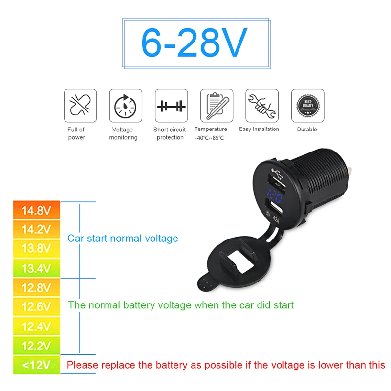 12v usb socket charge:12v usb socket voltmeter for huawei p9 lite , For huawei p10