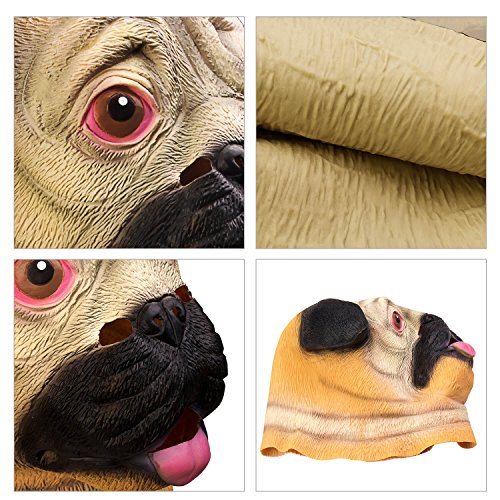 Vivid Pug Head Dog Mask - Best gifts for Halloween Party Costume Theater Cosplay Prop Gaming Style Dance Birthday