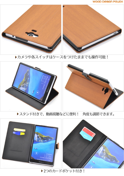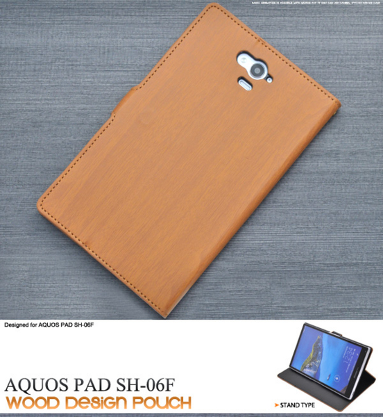 木目調のAQUOS PAD SH-06F用スタンドケースポーチ。