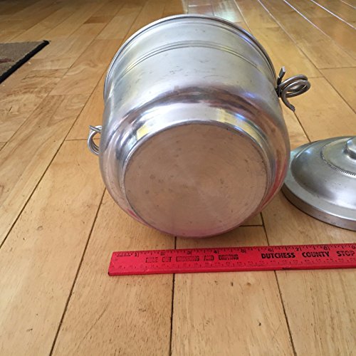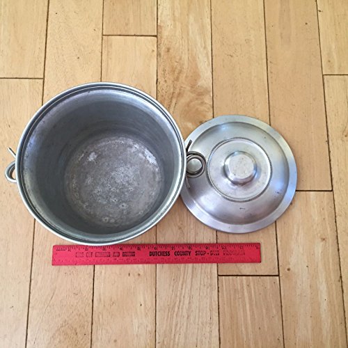 -. Title : Vintage Aluminum Ice Bucket Circular Ridges Pig Tail Finger Handles small dents