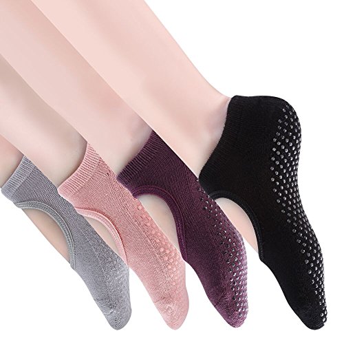 -. Title : Yoga Socks Non Slip Skid Pilates Ballet Barre with Grips for Women Girls 4 Pack by Cooque