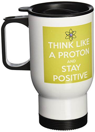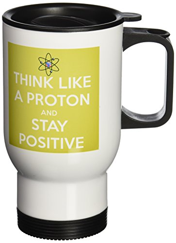 3dRose tm_173352_1 Think Like a Proton and Stay Positive, Yellow, Science Teacher Stainless Steel Travel Mug, 14-Ounce