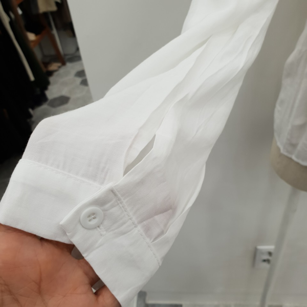 적당한 파임의 V넥 디자인으로 여성스러운 쇄골라인과 갸륵한 페이스라인을 연출해 주는 블라우스입니다:)넥 라인 중심부터 밑단까지 가볍게 주름 잡혀 부해보임없는 실루엣을 선사해드리구여~