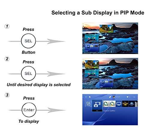 PIP (Picture in Picture)Enjoy multiple displays of your devices on your TV screen with the PIP feature. This feature will allow you to watch your football game and, at the same time, check your emails on your laptop display all on the same TV screen! The PIP feature supports up to 3 sub-screen and 1 main-screen displays, allowing you to multitask and switch between main displays with a single click on your infrared remote.