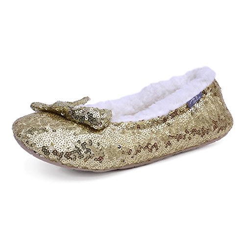 -. Binding : Apparel -. Brand : Intinext -. Department : womens -. Feature : Fleece / Skid Resistant TPR Sole / With a fleece-lined inside and brushed fleece outside, the seam-free construction provides an irritation-free fit / The completely improved insole is constructed with memory foam and sponge to provide superior comfortability / They are both hand or machine washable. -. ProductGroup : Shoes -. ProductTypeName : SHOES -. Title : Intinext Women's Ballerina Bling Metallic Shine Womens Cozy Sequin Slippers