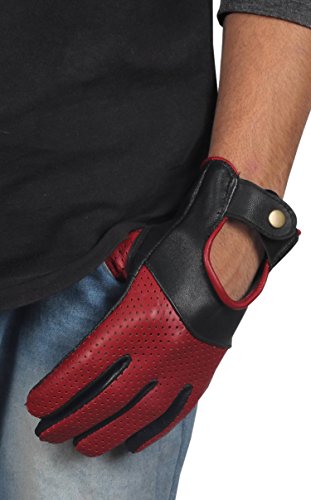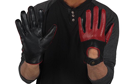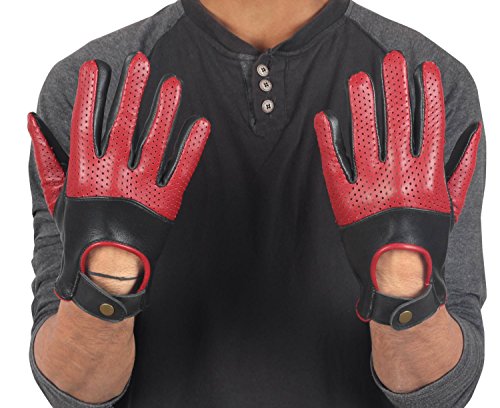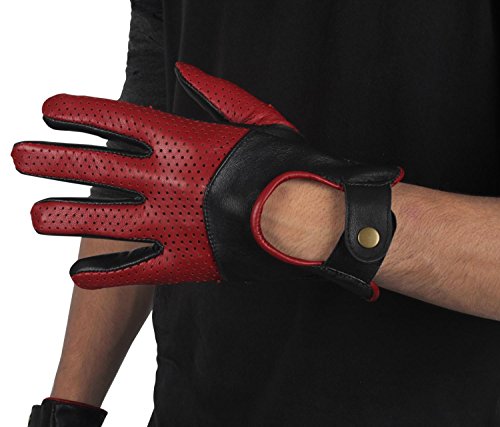 (Miracle(Tm))/Accessories/Cold Weather Accessories/DIRECT FROM USA/Miracle(Tm) Half Perforation Driving Genuine Leather Gloves - Mens Red and Black Leather Driver...