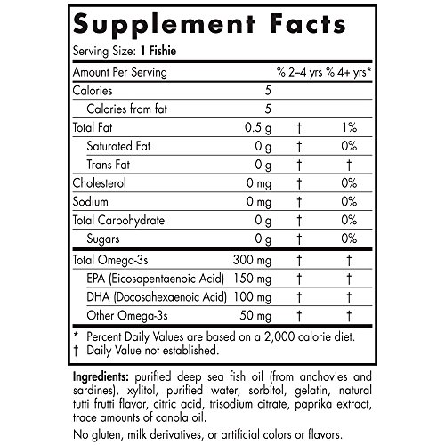 A TUTTI FRUTTI FAVORITE: Just one serving of these delicious tutti frutti-flavored fishies provides 300 mg omega-3s. These easy, chewable serving for ages 2+ are free of artificial coloring, flavoring, or preservatives.