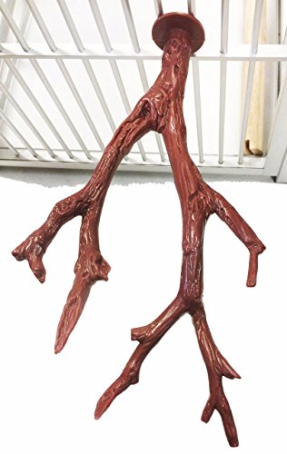 36306 Parrot plastic perch, an easy to clean bird safe BPA free plastic perch with natural grain edges that are easy on any small birds feet. This is easier to wipe and clean than wooden perches, plus they don't mould. Natural brown color and moulded from a natural perch giving you a natural branch feel. It measures approximately 10 inches long by 6 inches wide and has a built in cage connector. - Durable and long lasting.