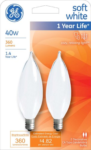 GE Lighting Soft White 66106 40-Watt, 360-Lumen Bent Tip Light Bulb with Candelabra Base, 8-Pack