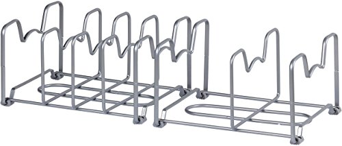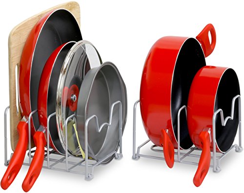 SimpleHouseware 2PK Kitchen Cabinet Pan and Pot Lid Organizer Rack, Total 6 Compartments, Silver