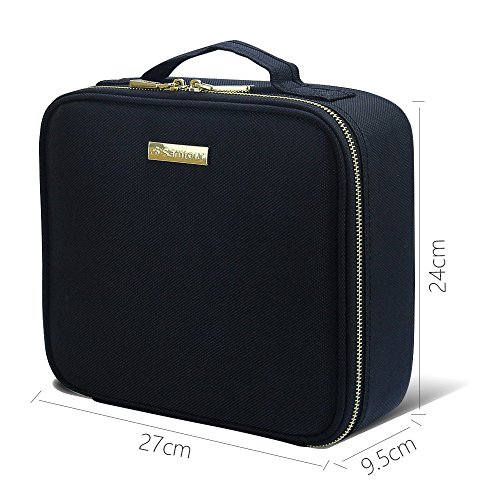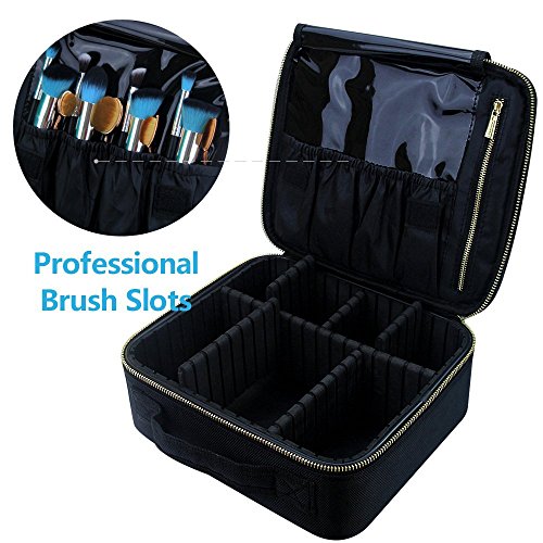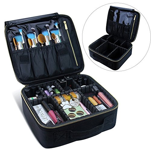Features: - With two-way luxury gold zipper and Top-grade Oxford Fabric , top-grade plastic cover . - Adjustable dividers, design your own compartments. - Sturdy top handle make it easy to carry. - Multiple pockets and slots for all kind of brushes. - Easy to Clean: Black Foamed oxford Insulate Lined for Easy Cleaning. - Durable with water proof, shake proof, anti-wear and spill-proof interiors for long use. - All women's essentials in one elegant case. - This is not only a great makeup cosmetic bag, You can also use it toiletry bag, travel bag, electronic bag, essential oils bag, electronic accessories bag, also can be used as a camera bag. Specification: Model: Durable Makeup Case Color: Black and Gold Zipper Material: Top-grade Oxford Fabric Size: 10.6L x 9.5W x 3.8H inch Weight: 800g / 1.7 pounds Package includes: 1*Portable Makeup Case Note: Cosmetic accessories not included in this item. 0