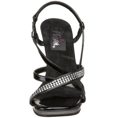 Amazon.com The Chic sandal from Pleaser is all about sex appeal. It features rhinestone detailing that sparkles at every turn, while the buckled ankle strap offers a customizable fit and the stiletto heel adds sultry height. 0