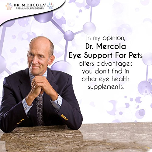 -. Feature : POWERFUL ANTIOXIDANT SUPPORT FOR YOUR PET'S EYESIGHT! Your pet's eyes are one of his or her most precious - and complex - organs. Since they're so important to your pet's well being throughout life, you obviously want to do all you can to help support and maintain healthy eye function. Your pet is never too young for eye health support! That's why Dr. Mercola has formulated this potent blend of antioxidants and nutrients, to sustain and invigorate beloved pets all over the world. / ASTAXANTHIN - A MAJOR BOOST FOR EYE HEALTH AND VISION SUPPORT - Considered by many to be "King" of the carotenoids, astaxanthin possesses antioxidant capacity up to 65 times more powerful than Vitamin C, 54X more powerful than Beta Carotene, and 5X more powerful than Lutein. Astaxanthin scavenges free radicals to help protect cells, organs and tissues from damage. Animals can't make their own astaxanthin, so they need it from their diet - and there are only a small handful of sources. / LUTEIN, ZEAXANTHIN, BILBERRY - ROBUST SUPPLEMENTS FOR EYE SUPPORT - Lutein and Zeaxanthin are two strong antioxidants that are vital to eye health. Both are found in high concentrations in the macula, or the part of the retina responsible for vision acuity. Animals don't produce these antioxidants, so they must be supplied by your pet's diet. As a further boost, bilberry fruit extract, Vitamin C and Vitamin E are included to help protect your pet's eyes from damaging free radicals. / TAKE THE VERY BEST CARE OF YOUR PET! As a caring and attentive parent to your pet, you know that your dog or cat depends on you to be proactive in supporting his or her health, including the maintenance of healthy eyesight. Dr. Mercola wants to make this as easy as possible, which is why Eye Support for Pets combines a potent formulation of human-grade antioxidant ingredients that is easy to dispense by just adding to food, with a natural liver flavor that your pet will love! / TRUST MERCOLA QUALITY AND EXCELLENCE! When choosing the best possible support for your pet's eyesight and eye health, it's crucial to select a supplement that has been carefully researched and formulated. With Dr. Mercola Eye Support for Pets, you get a potent combination of high-impact antioxidants and carotenoids. You can feel assured and confident that Dr. Mercola leaves absolutely nothing to chance in delivering you elite-quality products to enhance health and wellness!