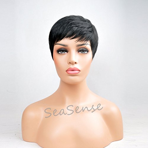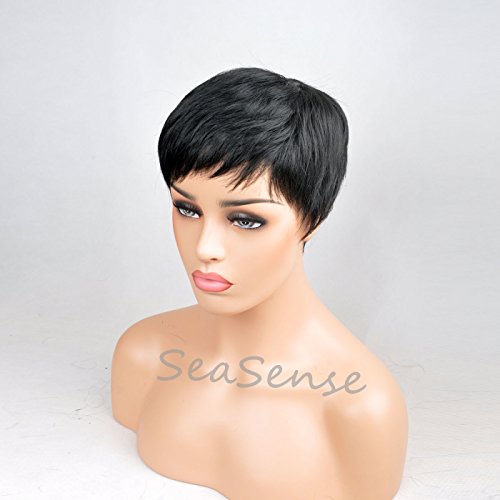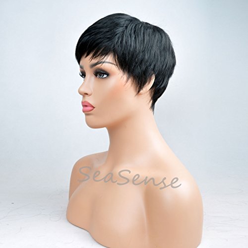 SeaSense Short Synthetic Hair Wigs Pixie Cut Wig for Black Women 1B Color
