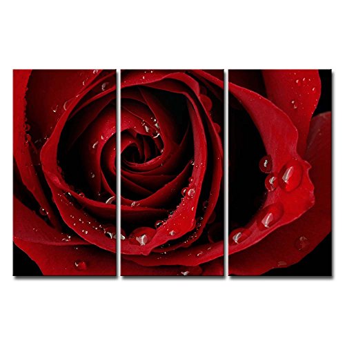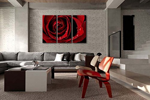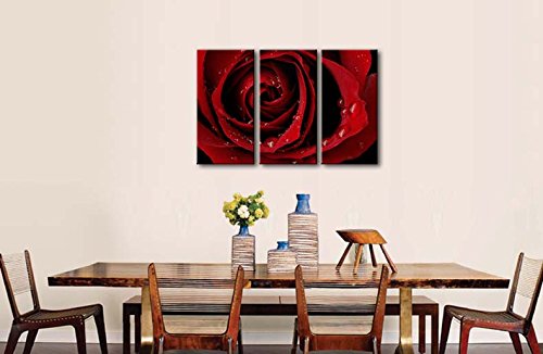 -. Title : Canvas P.R.Int Wall Art Painting For Home Decor Front Red Rose Bright Fresh Color Rose Water Drops On The Petal 3 Pieces Panel Paintings Modern Giclee Stretched And Framed Artwork The Picture For Living Room Decoration Flower Pictures Photo P.R.Ints On Canvas