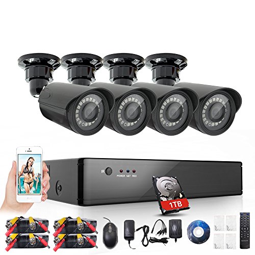 Rraycom Security Camera System 8 Channel 1080H HDMI DVR 4 2000TVL Weatherproof Indoor/Outdoor Cameras 1TB Hard Drive,SMD LED Night Vision Distance 36M