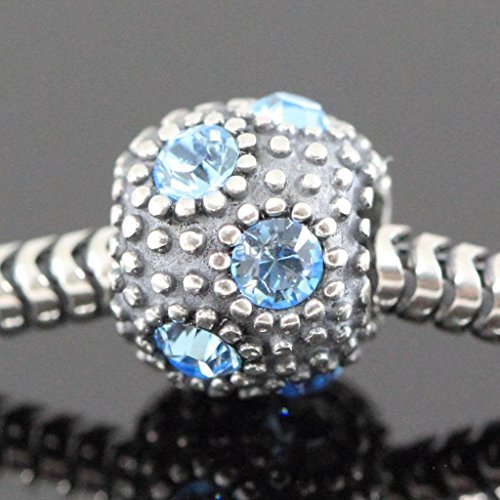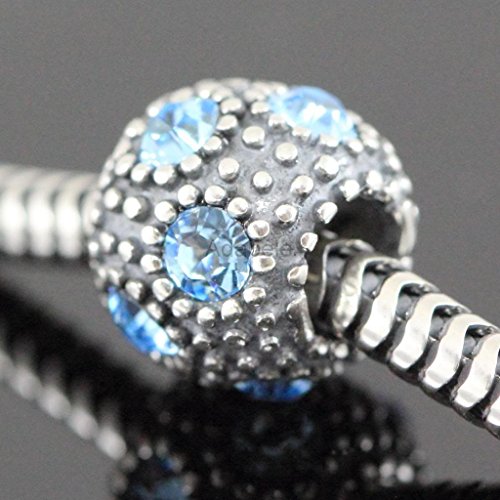 - Feature : Highly Detailed Fashion Jewelry Solid .925 Sterling Silver Charm ( Unthreaded charm beads ) / Bead Size (W/L): ~8.8 x 10.3 mm / bead hole diameter: ~ 4.5 mm / Colors: oxidized silver, Aqua blue CZ, / bead hole diameter: ~4.5mm