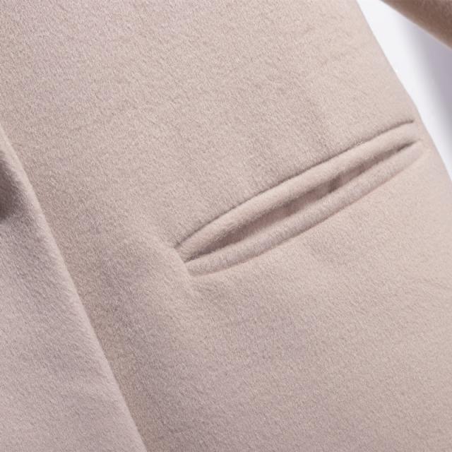 大きめの襟が女性らしいアウター。