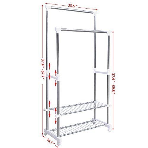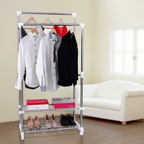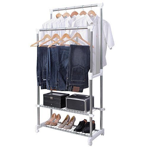 -. Title : Generic YH-US3-160519-269 8yh3352yh Hook Storage Rack Clothes om Shelves Adjustable Double Adjustabl Bottom Shelves ment Rack Rail Garment ouble Rai Holder Hook Storage