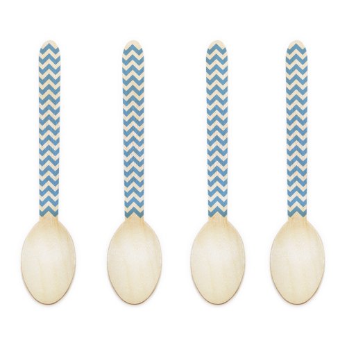 Dress My Cupcake 3.75-Inch Natural Wood Dessert Table Spoon, Cornflower Blue Chevron, Case of 500