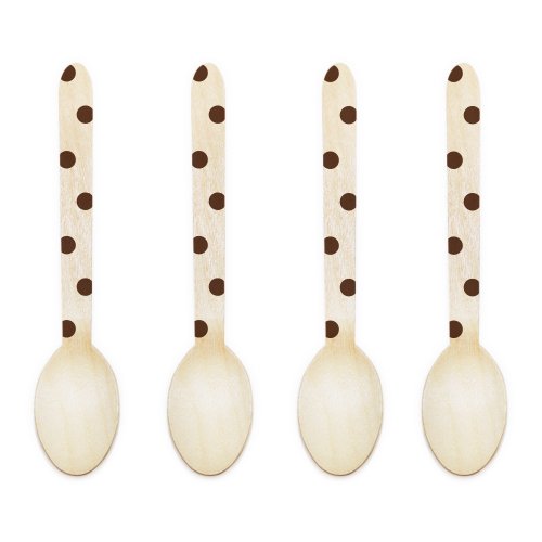 Dress My Cupcake 3.75-Inch Natural Wood Dessert Table Spoon, Brown Polka Dots, Case of 500
