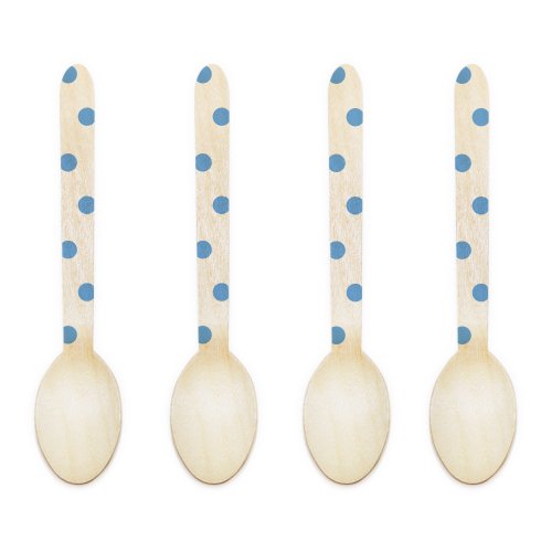 Dress My Cupcake 3.75-Inch Natural Wood Dessert Table Spoon, Cornflower Blue Polka Dots, Case of 500