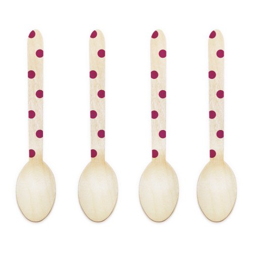 Dress My Cupcake 3.75-Inch Natural Wood Dessert Table Spoon, Plum Purple Polka Dots, Case of 500