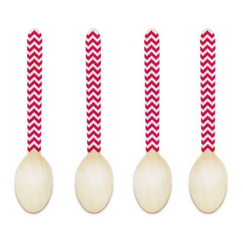 Dress My Cupcake 3.75-Inch Natural Wood Dessert Table Spoon, Fuchsia Chevron, Case of 500