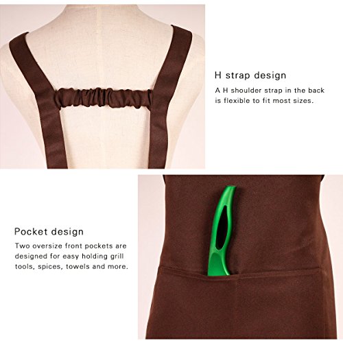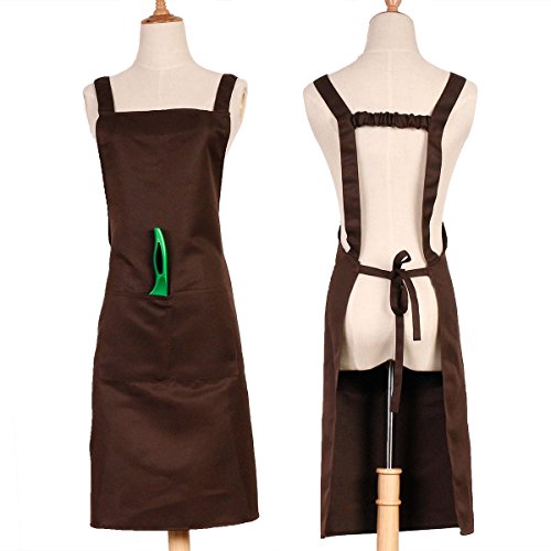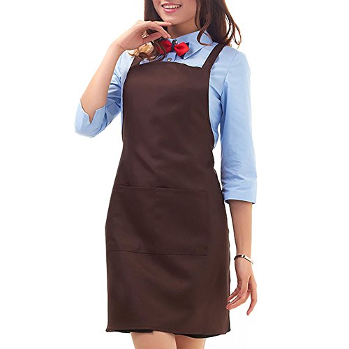 Aprons for Women and Men with Cuffs Pockets Home Restaurant Aprons Adjustable Waist and Neck Straps Ideal for Cooking Baking Cleaning BBQ (Brown)