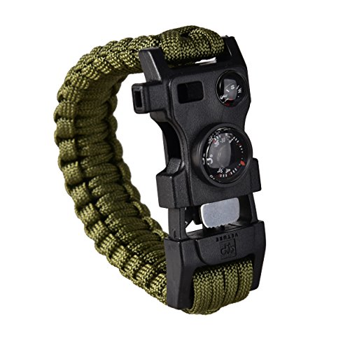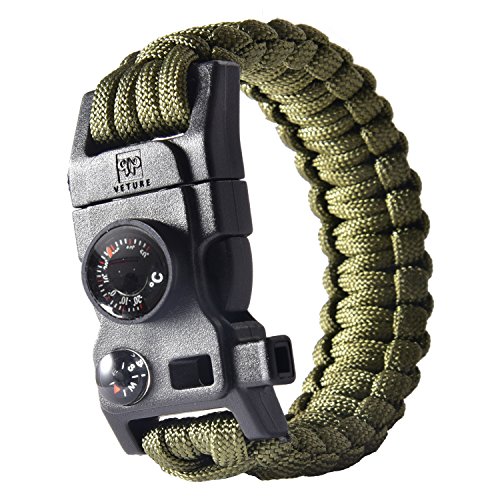 Veture Paracord Bracelet 15-in-1 Emergency Survival Bracelet Kit with Multitools (Scraper, Compass, Thermometer, Fire Starter and Whistle Included) for Ourdoor Camping Hiking