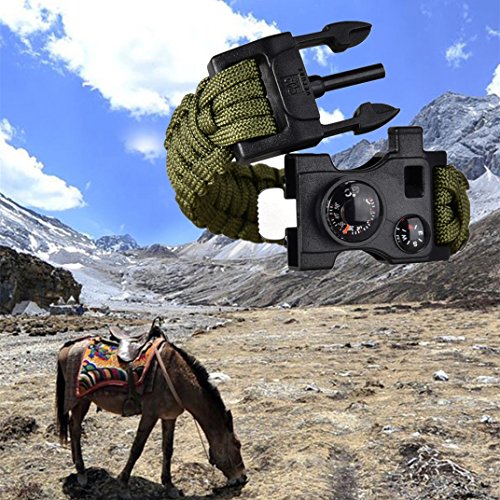 - MULTIFUNCTION – As a survival tool, Veture paracord bracelet combines 15 powerful functions in 1, such as compass, serrated knife/scraper, whistle, rescue paracord, bracelet, flint fire starter, thermometer and a detachable tool that has 8 kinds of extra application