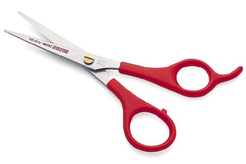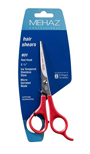 Studio : Mehaz Publisher : Mehaz Binding : Misc. Product Description Trademark red handle provides a sure grip. Built-in finger rest. One blade is micro-serrated, one blade is beveled. Micro-serrarated blade holds hair in place while cutting. Blades can be safely disinfected without rusting. Lifetime guarantee. Made in Solingen, Germany. 0