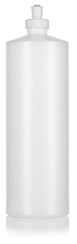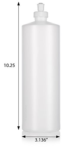 Clear Natural Refillable Plastic Squeeze Bottle with Push Pull Cap Dispenser 32 oz Extra Large - (3 Pack) + Labels