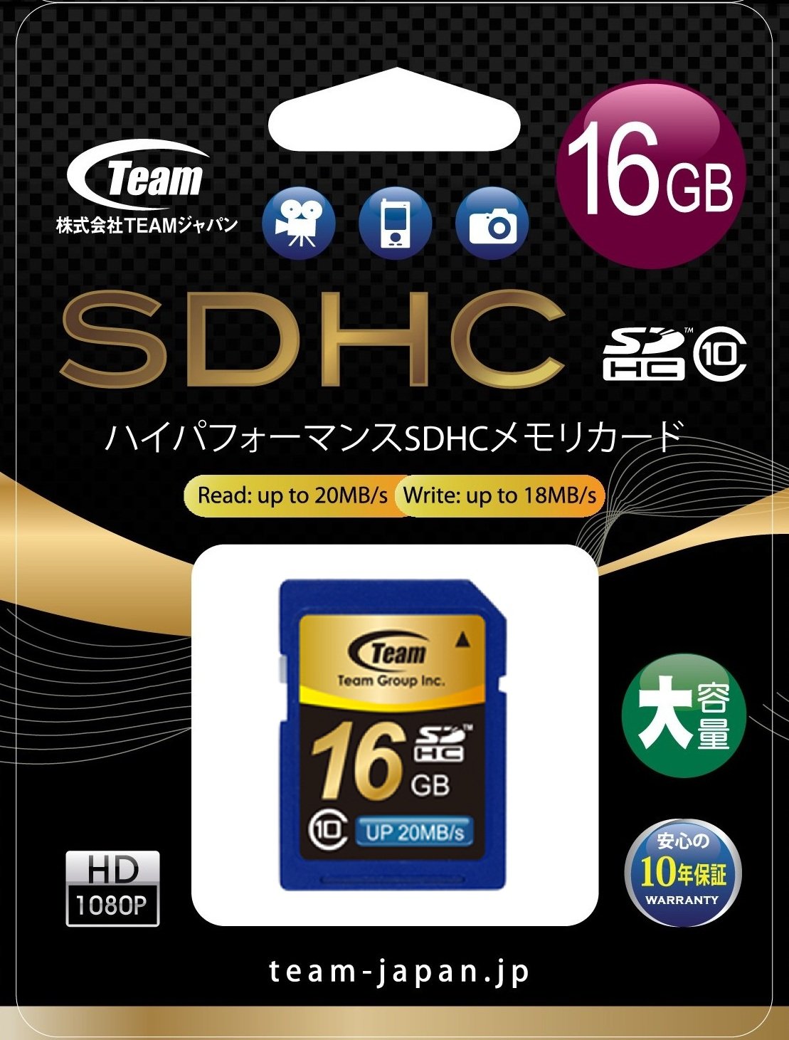 Team SDHC SD card CLASS10 16GB 20Mb / s TG016G0SD28K