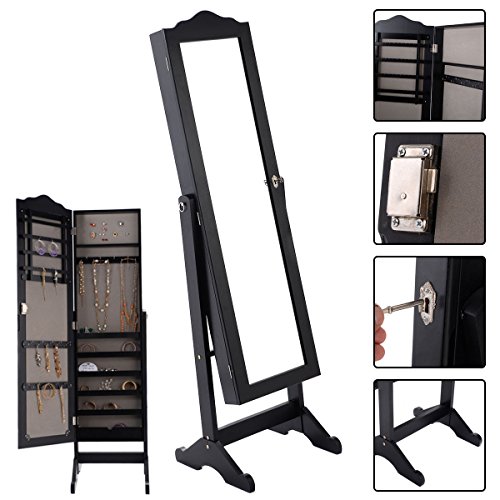 -. Title : Lockable Mirrored Jewelry Cabinet Armoire Mirror Organizer Storage Box w/ Stand