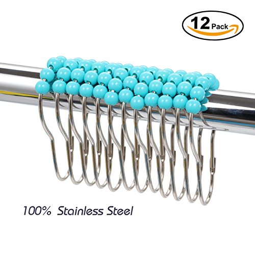INFOS 12 Piece Set Rustproof Stainless Steel Shower Curtain Rings Hooks for Bathroom Shower Rod,Decorative with Polished Metal Frame