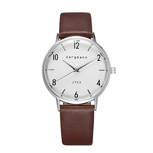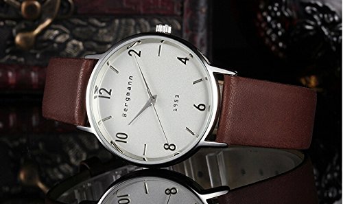 -. Title : Bergmann Vintage Classic Men Wrist Watch Brown Leather Silver Dial Brand Gents Watches Quartz 1953