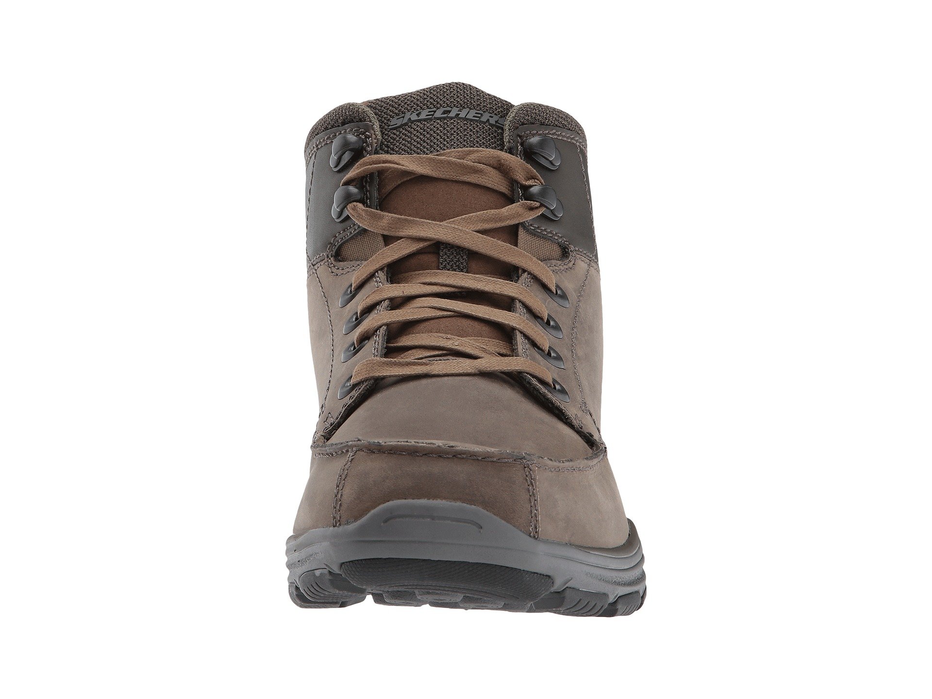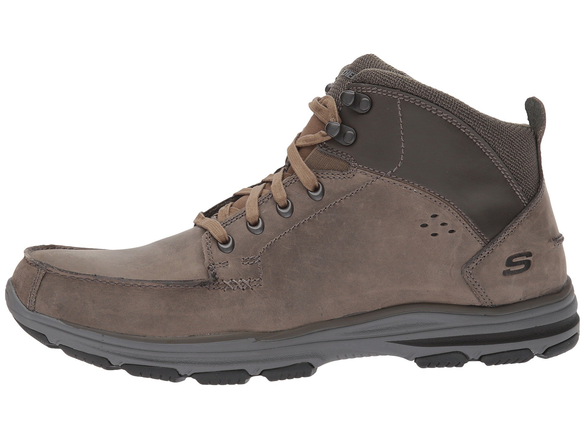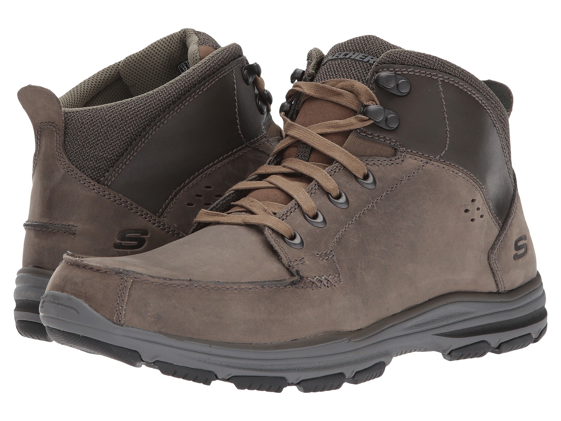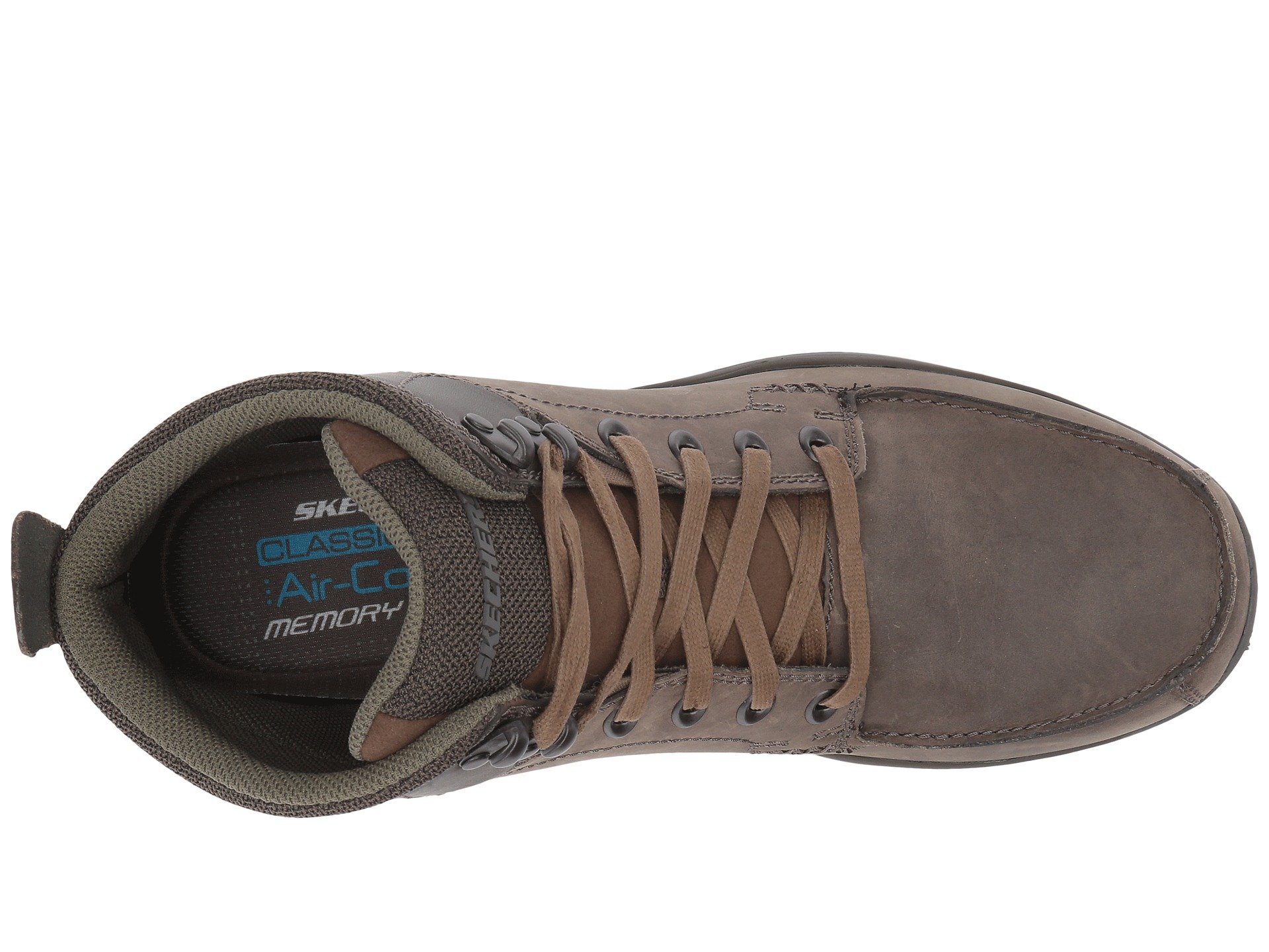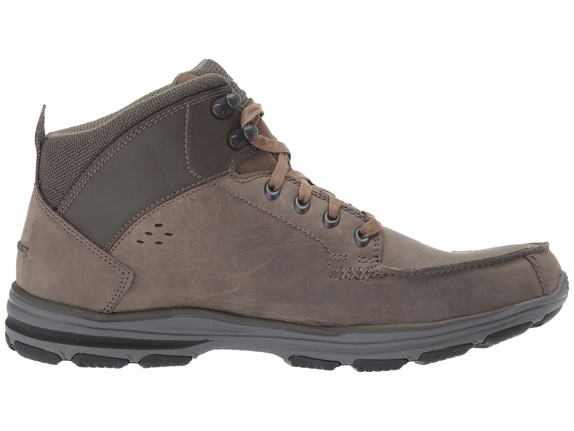 | Product Information SKU: #8913960Walk on air-cushioned comfort in handsome style with the SKECHERS? Garton boot!Casual chukka boot silhouette. Smooth oiled leather upper.Lace-up front with metal eyelets and top hooks.Abrasion-resistant distressed faux leather overlays at toe and heel panels.Classic Fit design.Moc toe with raised seams. Sides feature stitched seam detail and mini perforation accents.Dri-Lex mesh fabric collar and tongue panel for cooling effect.Air Cooled Memory Foam cushioned comfort insole.Skech-Air midsole with air cushioned heel and midsole comfort.Flexible rubber traction outsole for durable wear.Imported. Product measurements were taken using size 11, width D - Medium. Please note that measurements may vary by size.Weight of footwear is based on a single item, not a pair.Measurements: Weight: 14 oz |