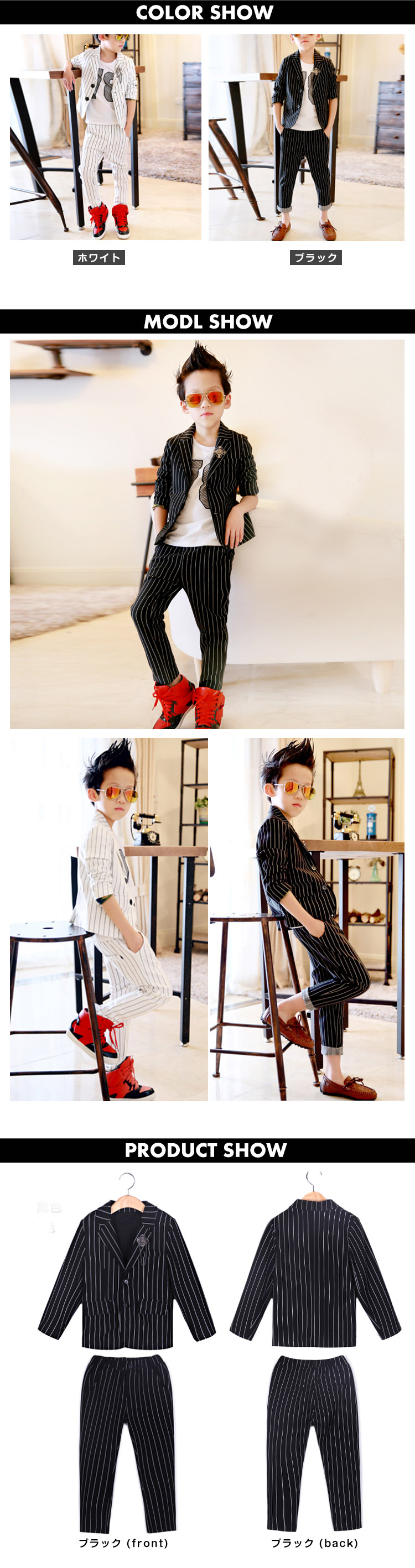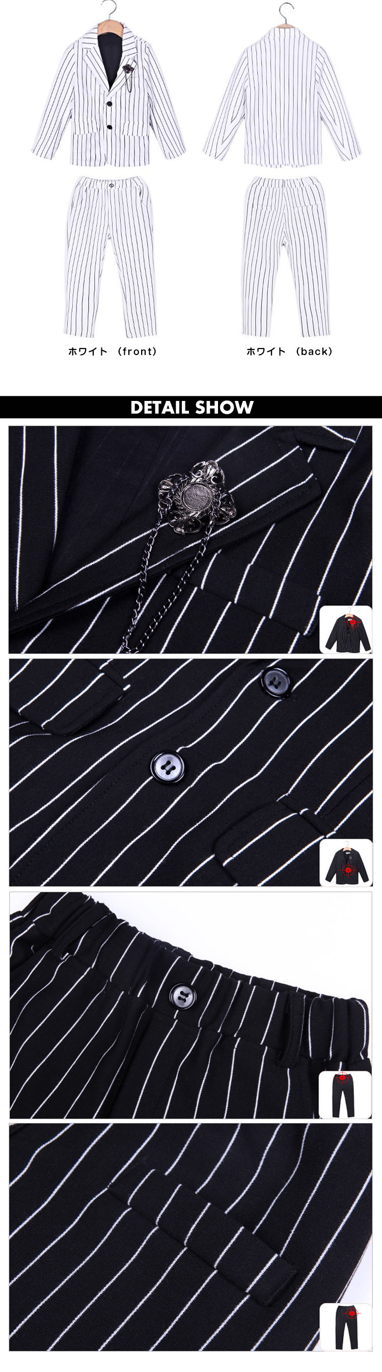 100 トップス着丈44 バスト32.5 肩幅27.5 袖丈40 ウェスト20 ズボン着丈61 ヒップ34110 トップス着丈46.5 バスト34.5 肩幅27.5 袖丈42 ウェスト22 ズボン着丈67 ヒップ36.5120 トップス着丈50.5 バスト36.5 肩幅28 袖丈46 ウェスト23 ズボン着丈73.5 ヒップ38130 トップス着丈52 バスト39.5 肩幅30 袖丈47.5 ウェスト24 ズボン着丈78.5 ヒップ40140 トップス着丈56 バスト40 肩幅30.5 袖丈50.5 ウェスト24.5 ズボン着丈86 ヒップ43150 トップス着丈58 バスト41 肩幅32 袖丈54 ウェスト25 ズボン着丈90 ヒップ45160 トップス着丈61 バスト43.5 肩幅35 袖丈56 ウェスト26 ズボン着丈97 ヒップ45.5※上記サイズは平置き実寸になります。サイズ表の実寸法は商品によって2-4cm程度の誤差がある場合がございます。
