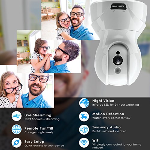 Wireless Security Camera,KAMTRON HD WiFi Security Surveillance IP Camera Home Monitor with Motion Detection Two-Way Audio Night Vision,White