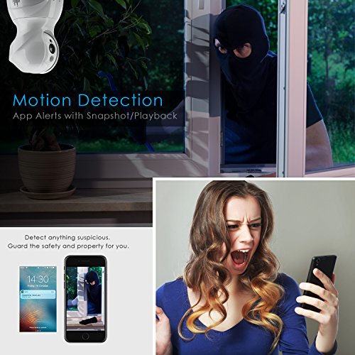 Motion Detection and Two-way audio: Intelligent motion detection, Two-way voice built-in mic and speaker. App alerts with snapshot&record(SD Card Required) to your mobile device and you can immediately warn the invader with the speaker.