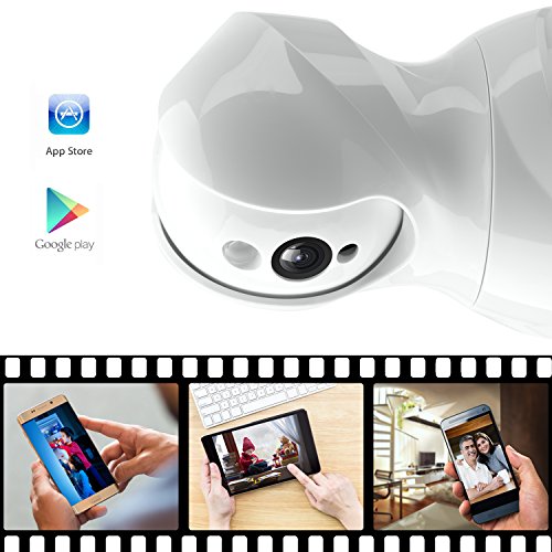 Broad Field of View: Wide 62 Degree Viewing Angle, 350 Degree x 100 degree covers every corner of your home, 1 Super IR LED for Night Vision Up to 20ft, IR cut for capture love images, One million pixel high definition. Supports remotely control the camera rotating to watch every corner indoor with MIPC View App.