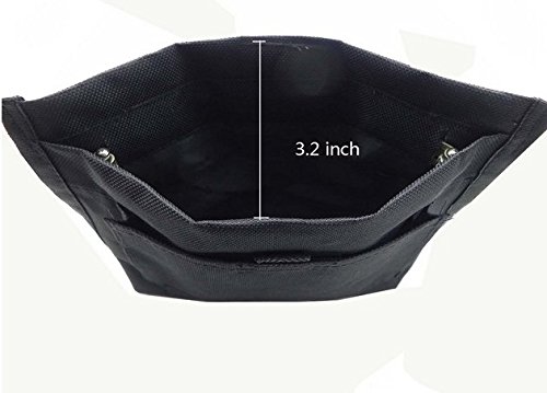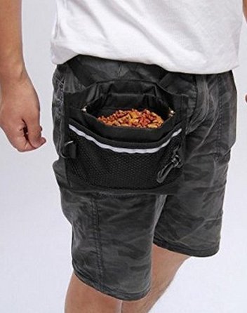 -. Feature : Training dog treat bag can be worn around the waist or clipped to a pocket . / The main pouch has a stay-open spring hinge top that snaps shut to keep treats securely stored. / Water-resistant bag has a key ring and two additional pockets, keep treats handy during agility training sessions. / Great for an outing when you need to bring money, credit cards or keys. / Dimension: (L)9inch, (H)7.2inch, Opening width is 3.2 inch.